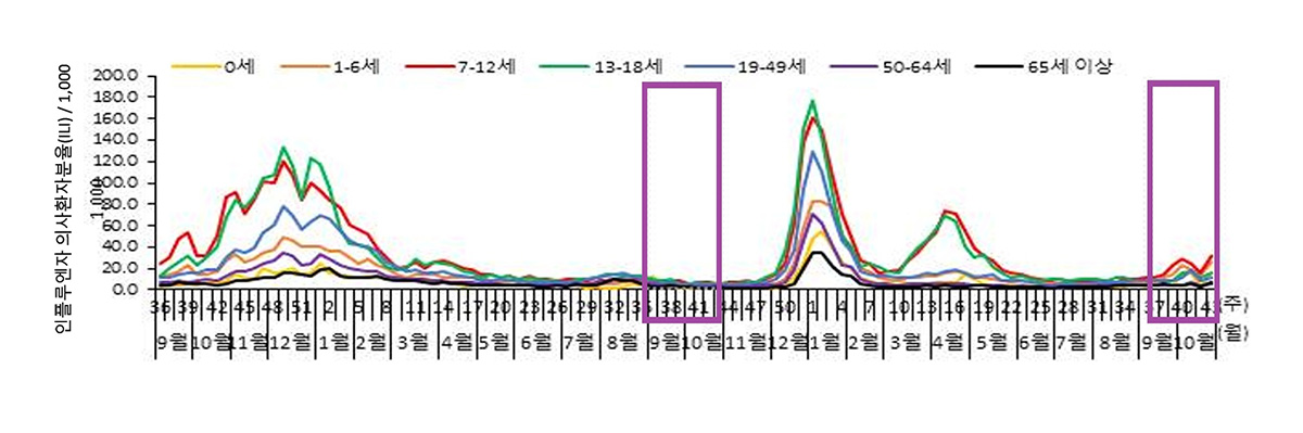 * 인플루엔자 의사환자분율(천분율) = 인플루엔자 의사환자 수/총 진료환자 수 x 1,000명 -