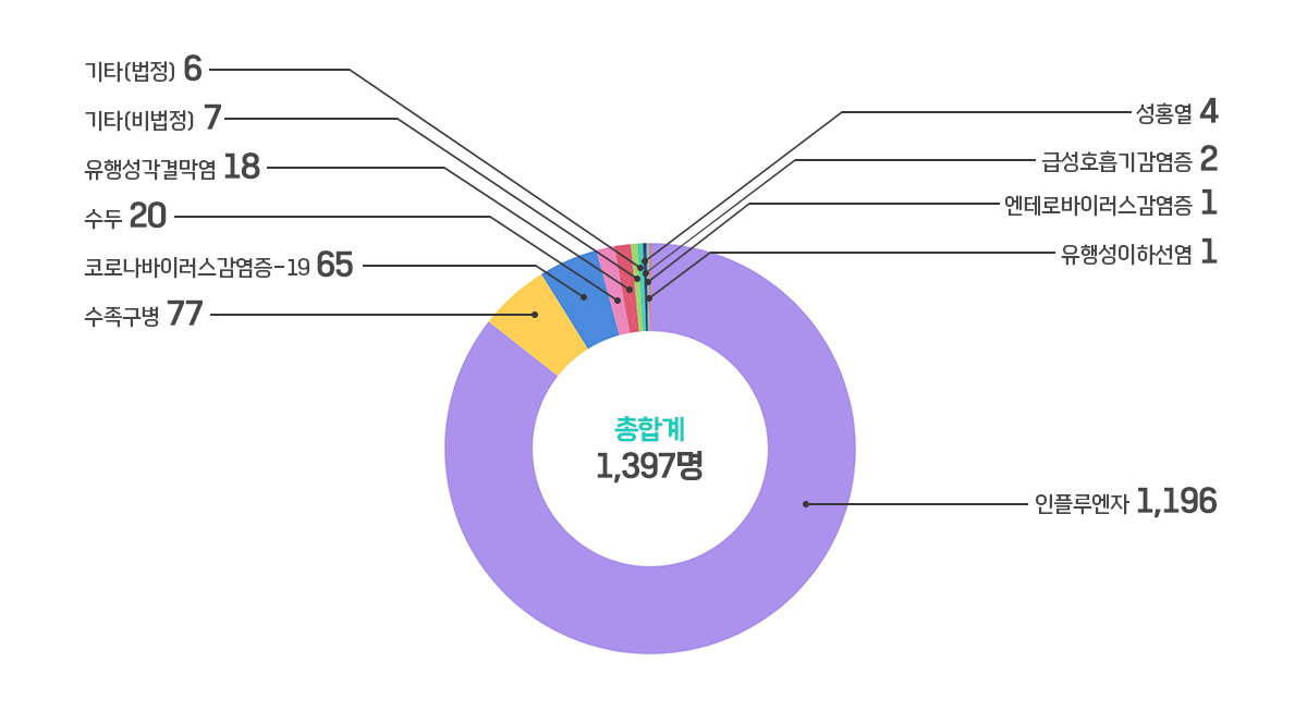 - 이와 함께 수두(20명), 유행성각결막염(18명), 성홍열(4명) 등도 발생하였다.
