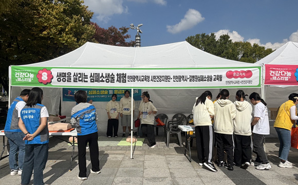 특히 인천광역시교육청 시민건강지원단과 길병원 심폐소생술 교육팀이 함께한 ‘심폐소생술 체험’ 부스는 가족 단위 참가자들로 북적이며 응급처치의 중요성을 일깨웠다.