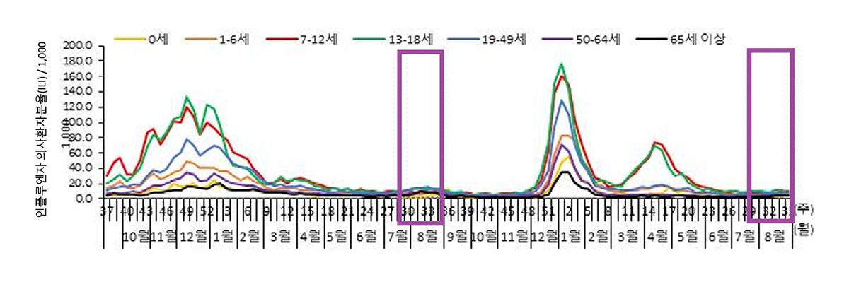 연령별 인플루엔자 의사환자분율(/1,000명당)