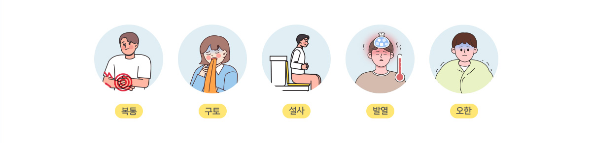노로바이러스 감염증은 대개 음식물 섭취 후 1-2일간의 잠복기를 거친 후 구토, 설사 등의 증상이 나타나고 복통, 오한, 발열이 나타나기도 합니다.